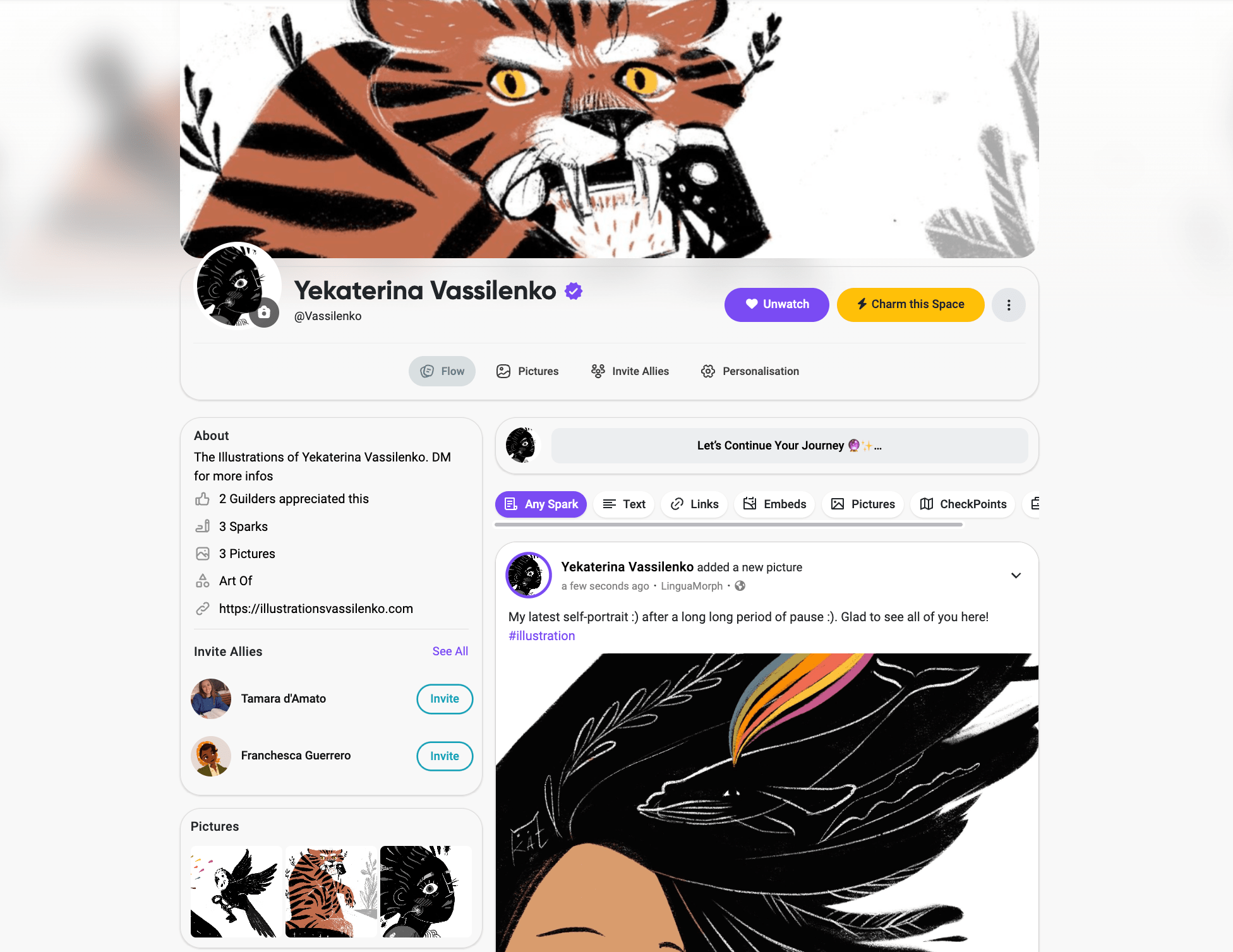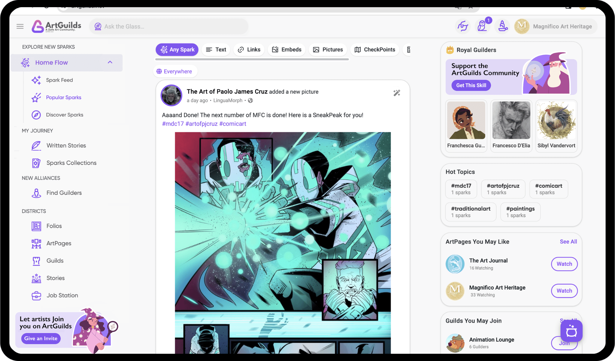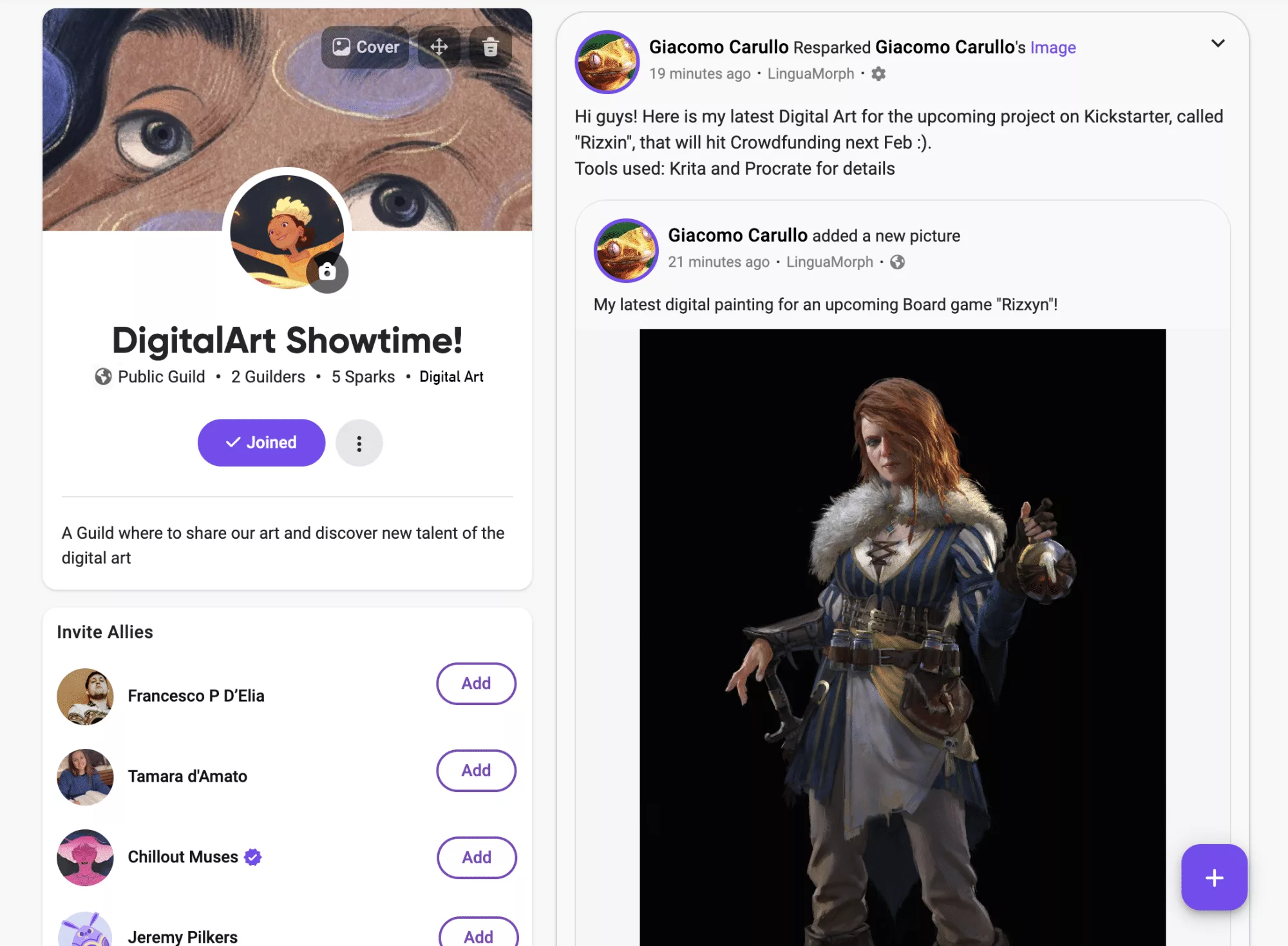 Let yourself be inspired, amused, entertained by what your Allies and Guilds Sparks or discover new Guilders and their works, directly in your Home Flow.