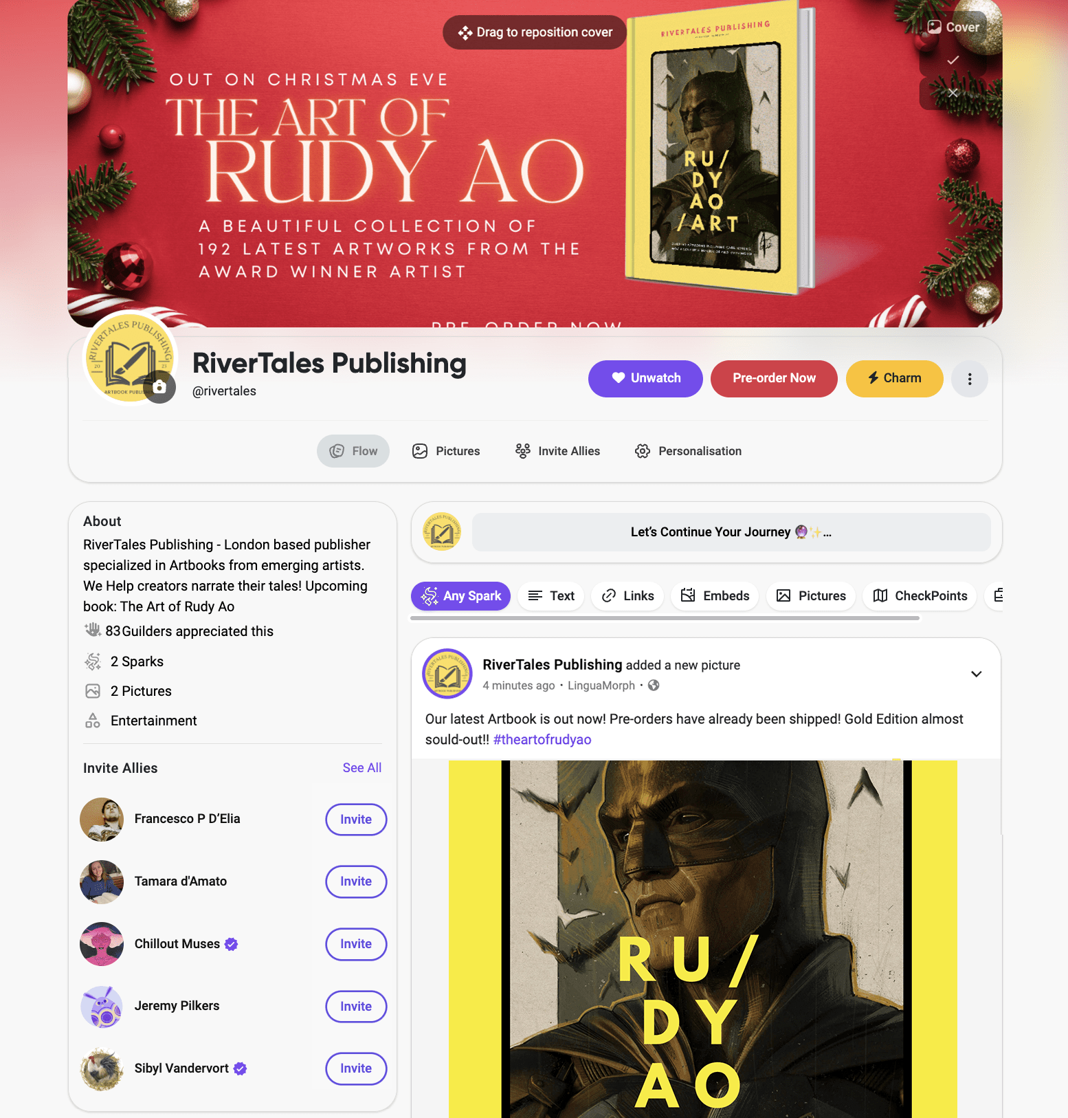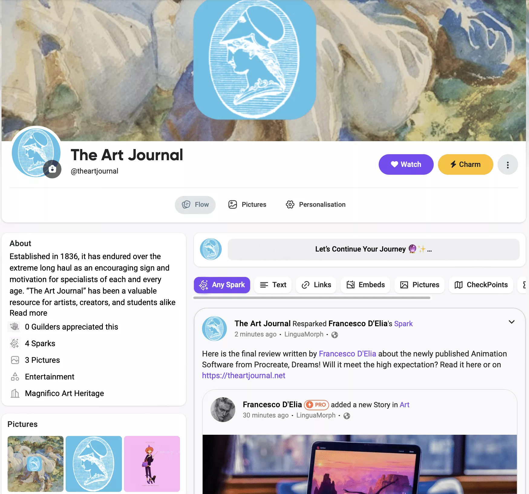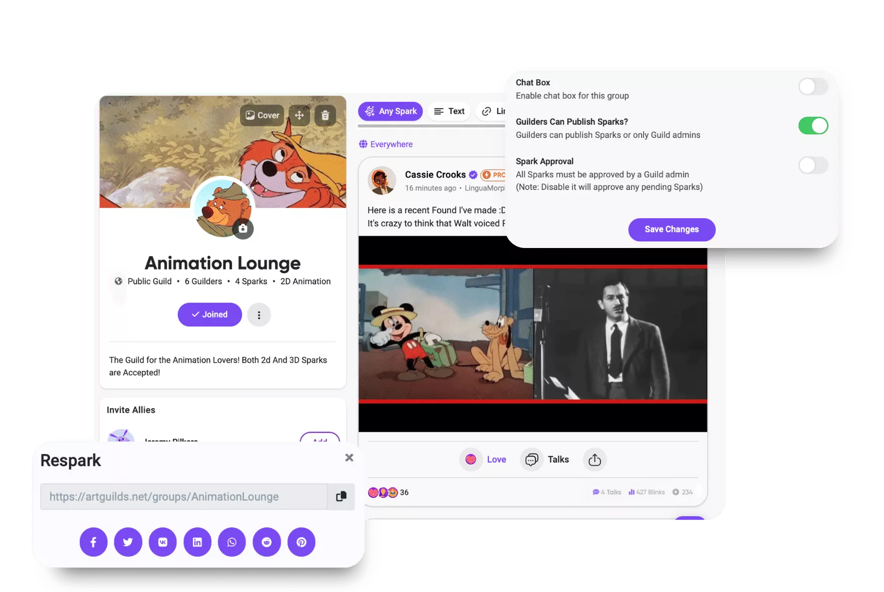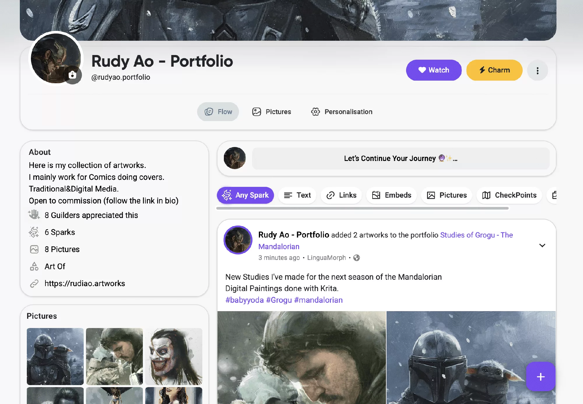 Let yourself be inspired, amused, entertained by what your Allies and Guilds Sparks or discover new Guilders and their works, directly in your Home Flow.